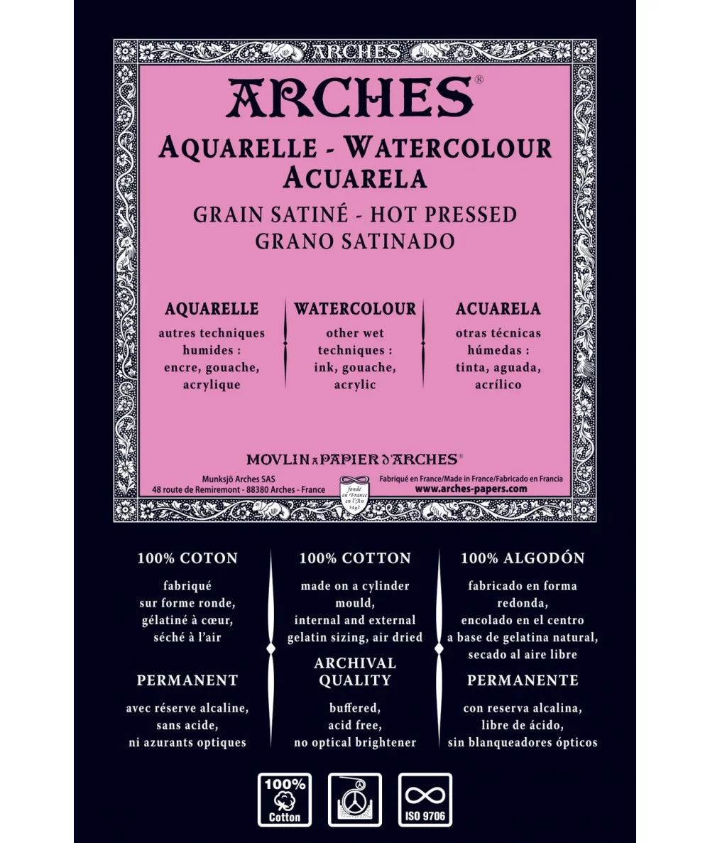 Fabricado en forma redonda (método tradicional): una calidad que se aproxima a la del papel fabricado de forma artesanal. La rotación lenta del cilindro permite la disposición regular de las fibras y su distribución en todas direcciones en el lienzo. Las fibras se distribuyen de forma homogénea, el papel se destensa uniformemente cuando está mojado, lo que facilita un mayor control al artista. Este procedimiento permite producir papeles de alto gramaje y con una resistencia excepcional al raspado y al borrado, puesto que se han gelatinado en la masa. Solo la fabricación en forma redonda permite obtener papeles con barbas.
