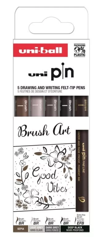 Set de 5 rotuladores pincel Brush Art Pin Uni-Ball